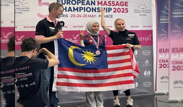 PARIS, 26 Mei- Malaysia terus mencipta sejarah di pentas dunia apabila Pemaju Masyarakat Jahitan KEMAS Parlimen Kubang Pasu, Siti Hajar Mahmud, dinobatkan sebagai juara tunggal dalam kategori Best Wellness & Relaxation Massage (International Division) di Kejohanan Urutan Eropah 2025 yang berlangsung di Paris, Perancis.