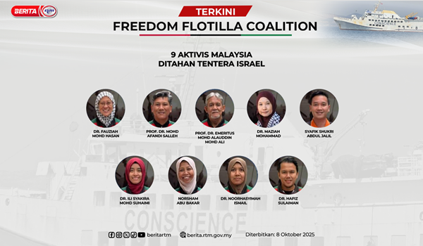 PUTRAJAYA, 9 Oktober – Kerajaan Malaysia sedang giat berusaha mendapatkan pembebasan segera dan tanpa syarat sembilan warganegara Malaysia yang kini ditahan secara haram oleh rejim Israel sejak 8 Oktober lalu.
