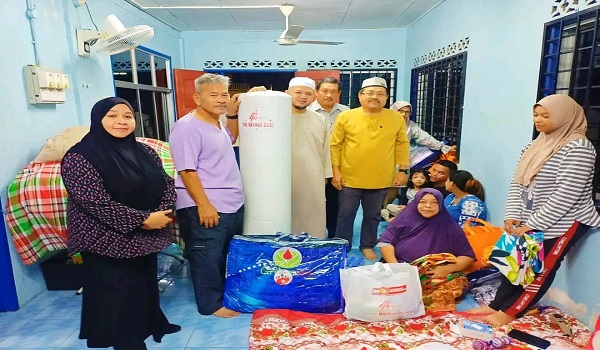 UMNO Bahagian Kangar menyalurkan barangan keperluan harian seperti tilam, toto, bantal dan telekung kepada mangsa yang kini ditempatkan sementara di Dewan Orang Ramai Kampung Tok Kandang.