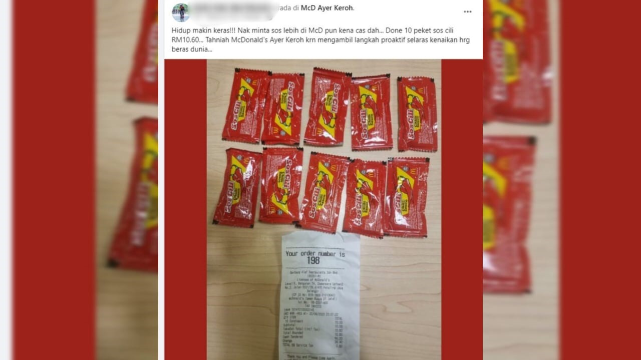 (Hantaran tular di laman Facebook oleh pelanggan yang mendakwa dikenakan caj kerana meminta sos lebih)