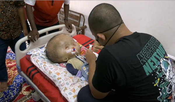 Lebih teruk lagi, berat kepalanya kini mencecah 25 kilogram manakala badannya hanya seberat 5 kilogram, menjadikan hidup keluarga ini tertekan.
