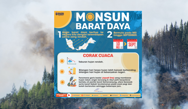 “Orang ramai dinasihatkan untuk tidak melakukan pembakaran terbuka dan digalakkan menggunakan air secara berhemah sepanjang tempoh Monsun Barat Daya ini,” menurut kenyataan itu pada Selasa.