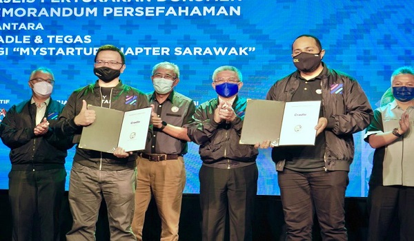 KUCHING, 24 Jun – Kementerian Sains, Teknologi dan Inovasi (MOSTI) menerusi Cradle Fund Sdn Bhd (Cradle) hari ini memeterai Memorandum Persefahaman (MoU) dengan Tabung Ekonomi Gagasan Anak Sarawak (TEGAS) bagi memperluaskan lagi inisiatif MYStartup, seterusnya meningkatkan penglibatan syarikat pemula di Sarawak.