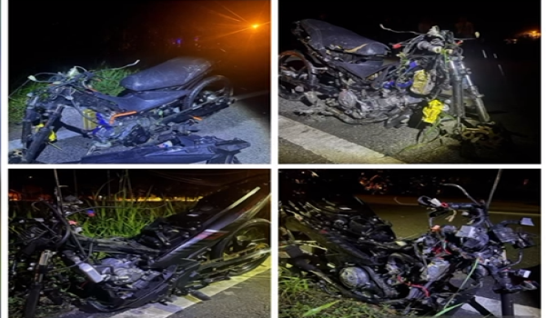 “Setibanya di lokasi kejadian, kedua-dua motosikal telah bertembung di tengah jalan menyebabkan kedua-dua mangsa terjatuh ke tepi jalan. Akibat pelanggaran, kedua-dua mangsa disahkan meninggal dunia di lokasi kejadian,” katanya menerusi kenyataan.