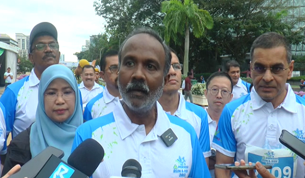 Menteri Sumber Manusia, V Sivakumar bersama para peserta program PERKESO Run & Ride 2023 di sini hari ini.