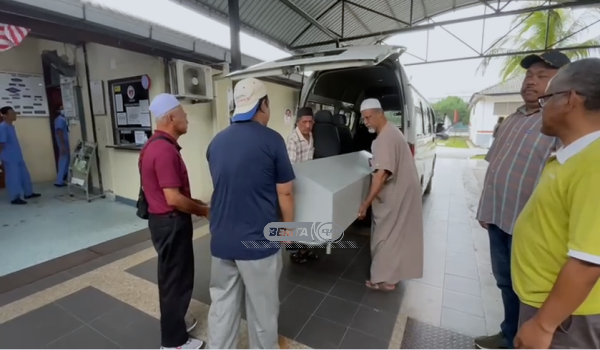KUANTAN, 9 Jun- Jenazah Pembantu Operasi Sekolah Kebangsaan (SK) Jeram, Hamzah Ahmad, 60, dibawa keluar dari bilik mayat Hospital Tengku Ampuan Afzan (HTAA) Kuantan pada pukul 5.15 petang tadi.