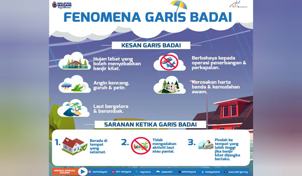 KUALA LUMPUR, 9 Mei– Jabatan Meteorologi Malaysia (MetMalaysia) mengingatkan orang ramai agar berwaspada dan mengambil langkah berjaga-jaga susulan fenomena garis badai yang semakin kerap berlaku ketika Monsun Barat Daya.