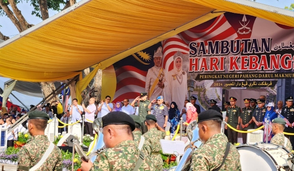 KUANTAN, 31 Ogos- Sultan Pahang Al-Sultan Abdullah Ri’ayatuddin Al-Mustafa Billah Shah berkenan berangkat menyaksikan sambutan Hari Kebangsaan peringkat negeri Pahang bersama-sama lebih 65,000 rakyat Pahang.