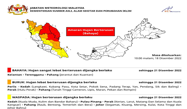 (METMalaysia keluarkan amaran hujan sangat lebat berterusan tahap bahaya)