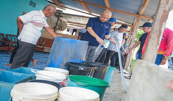 Datuk Armizan yang juga Menteri Perdagangan Dalam Negeri dan Kos Sara Hidup ditemui media selepas meninjau proses penghantaran bekalan air bersih di Kampung Kuala Dalam Papar.