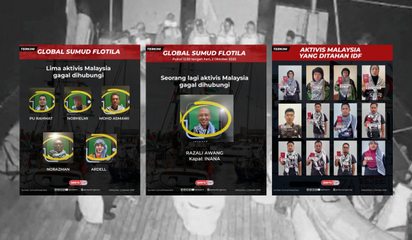 KUALA LUMPUR, 2 Oktober – Pasukan guaman Malaysia mewakili Sumud Nusantara menuntut tiga perkara daripada Israel susulan serangan Tentera Laut Israel terhadap aktivis yang ditahan awal hari ini ketika menyertai misi Global Sumud Flotilla (GSF).