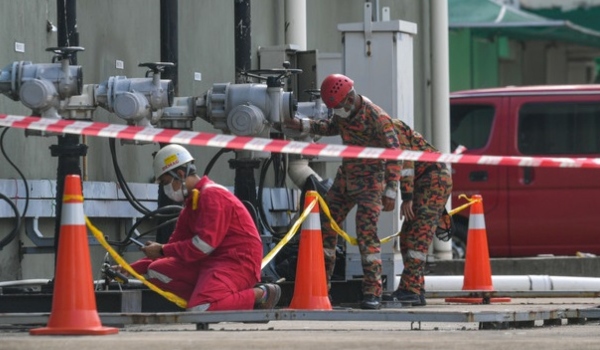 Pasukan terdiri daripada anggota Jabatan Bomba dan Penyelamat (JBPM) serta petugas IWK dilihat mengadakan perbincangan dipercayai mengenai operasi hari ini.