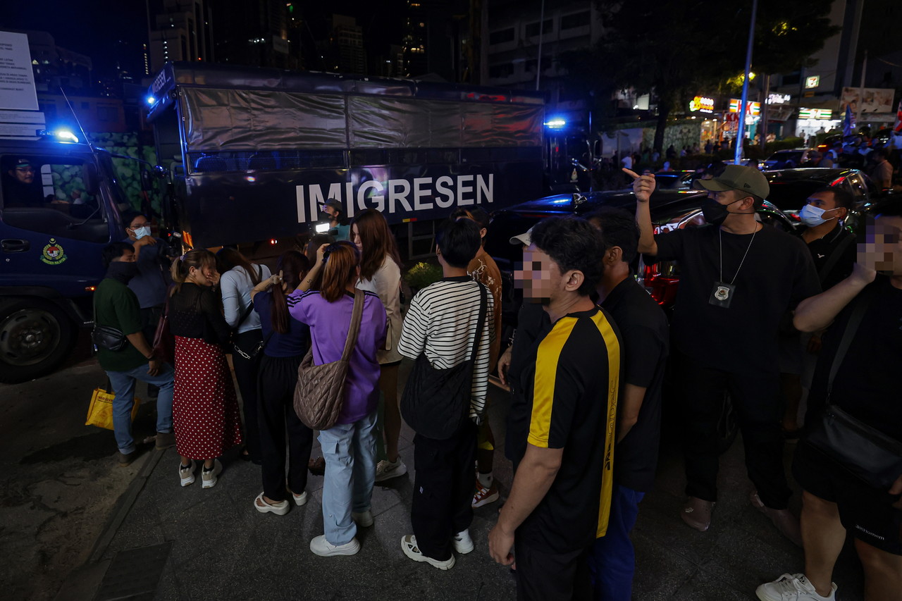 “Kesemua yang ditahan ini disyaki melakukan pelbagai kesalahan di bawah Akta Imigresen seperti tiada dokumen perjalanan, tinggal lebih masa serta salah guna pas. Mereka akan dihantar ke Depot Tahanan Imigresen Bukit Jalil untuk siasatan lanjut,” katanya pada sidang media di lokasi serbuan malam tadi.