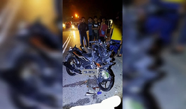 (Gambar menunjukkan keadaan motosikal mangsa remuk akibat rempuhan)