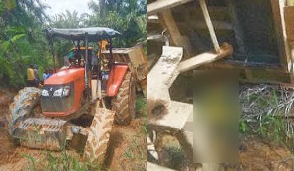 “Kejadian berlaku kira-kira pukul 1.00 tengah hari ketika pemandu traktor sedang mengundurkan jentera sambil menaikkan bucket berisi muatan sawit.