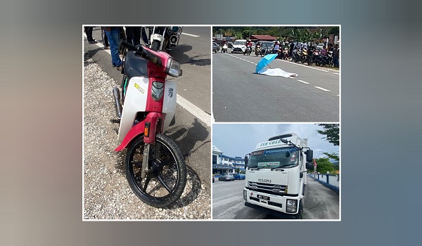 Mangsa dipercayai cuai ketika keluar dari simpang di sebelah kiri jalan sebelum motosikalnya bergesel dengan bahagian belakang lori.
