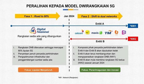 Kementerian Komunikasi dan Digital (KKD) sentiasa bekerjasama dengan Kementerian Kewangan (MOF) dan DNB serta pihak penyedia perkhidmatan bagi memastikan peralihan kepada model dwirangkaian berjalan dengan lancar tanpa menjejaskan kepentingan rakyat dan keyakinan pelabur.