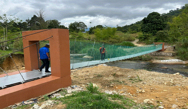 "Panjang jambatan gantung itu lebih 1.2 meter dan kos pembinaannya ialah RM350,000 oleh Kementerian Kemajuan Desa dan Wilayah menerusi JAKOA.