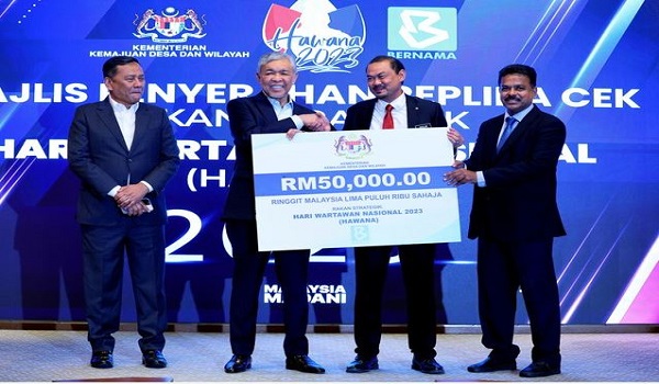 Pada majlis itu, Kementerian Kemajuan Desa dan Wilayah (KKDW) menyumbang tajaan bernilai RM 50,000.00 untuk penganjuran HAWANA 2023 bertemakan “Media Bebas, Tunjang Demokrasi” yang dijadual berlangsung dari 27 hingga 29 Mei ini di Ipoh, Perak.