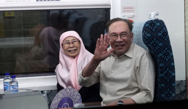 Turut menemani beliau isterinya Datuk Seri Dr Wan Azizah Wan Ismail sambil diiringi Ketua Pegawai Operasi Keretapi Tanah Melayu Berhad (KTMB) Afzar Zakariya.