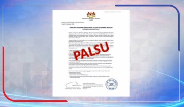 PUTRAJAYA, 27 Oktober – Jabatan Perdana Menteri (JPM) menafikan kesahihan dokumen bertajuk “Perintah Larangan Penggunaan Telefon Pintar Bagi Individu Di Bawah Umur 16 Tahun” yang sedang tular di aplikasi WhatsApp.