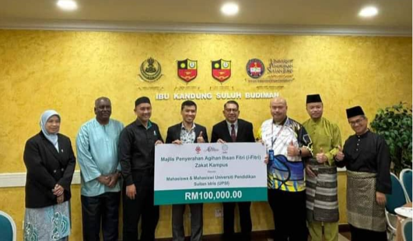 TANJUNG MALIM, 1 Jun– Badan kebajikan Petronas menyerahkan sumbangan zakat sebanyak RM100,000 kepada Universiti Pendidikan Sultan Idris (UPSI) pada Sabtu bagi membantu mahasiswa asnaf.