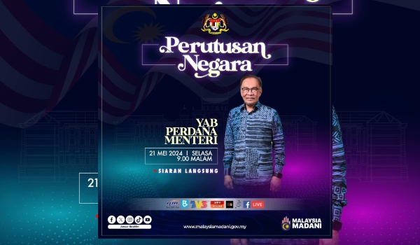 KUALA LUMPUR, 21 Mei- Perdana Menteri Datuk Seri Anwar Ibrahim akan menyampaikan perutusan negara secara langsung menerusi semua saluran media tempatan pada pukul 9.00 malam ini.