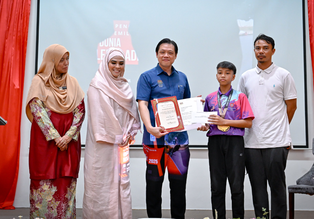 KUALA LUMPUR, 24 Jun- Perdana Menteri Datuk Seri Anwar Ibrahim semalam menyampaikan sumbangan kepada Muhammad Iftikhar Firas Farid yang muncul sebagai juara dunia dalam pertandingan “Roller Freestyle Park Junior” di Perancis baru-baru ini.
