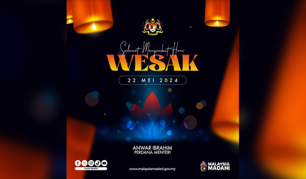 KUALA LUMPUR, 22 Mei – Perdana Menteri Datuk Seri Anwar Ibrahim menzahirkan ucapan Selamat Hari Wesak buat seluruh penganut Buddha terutamanya di Malaysia.