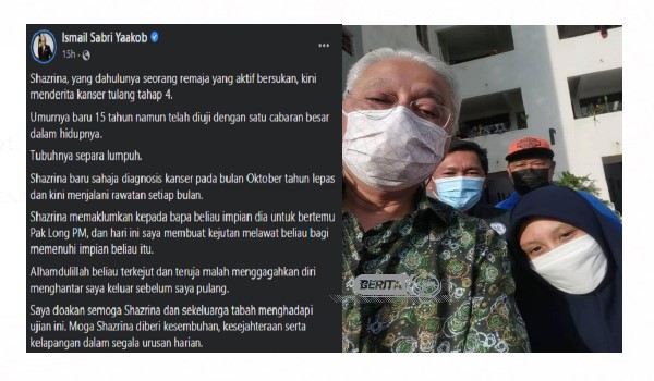 SEPANG, 16 Januari – Hasrat seorang remaja menderita kanser tulang tahap empat untuk berjumpa dengan Perdana Menteri, Datuk Seri Ismail Sabri akhirnya tercapai.