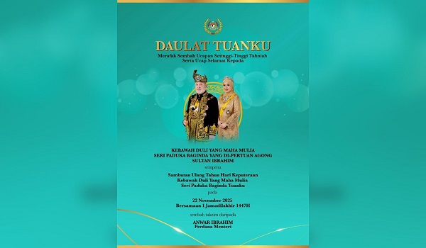 KUALA LUMPUR, 22 November - Perdana Menteri Datuk Seri Anwar Ibrahim merafak sembah dan menzahirkan ucapan tahniah bersempena Ulang Tahun Hari Keputeraan Yang di-Pertuan Agong Sultan Ibrahim yang ke-67, pada Sabtu.