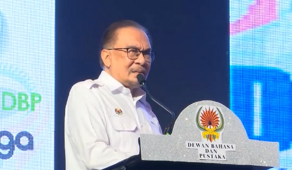 Anwar berucap merasmikan Majlis Pelancaran Bulan Bahasa Kebangsaan 2024 di Pusat Konvensyen Ipoh hari ini. Turut hadir adalah Menteri Besar Perak Datuk Seri Saarani Mohamad, Ketua Setiausaha Negara Tan Sri Shamsul Azri Abu Bakar dan Ketua Pengarah Dewan Bahasa dan Pustaka Dr Hazami Jahari.