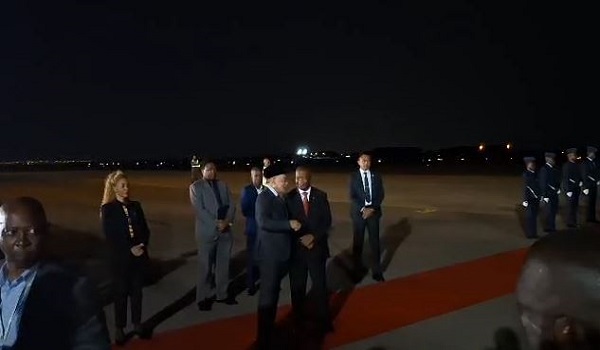 Pesawat yang membawa beliau dan delegasi selamat mendarat di Pangkalan Tentera Udara Waterkloof, Pretoria sebelum disambut oleh Pesuruhjaya Tinggi Malaysia ke Afrika Selatan, Datuk Yubazlan Yusof bagi pihak Malaysia; Timbalan Menteri Pertahanan dan Veteran Tentera Afrika Selatan, Mejar Jeneral (B) Bantubonke “Bantu” Harrington Holomisa dan Ketua Pengarah Jabatan Perhubungan Antarabangsa dan Kerjasama untuk Asia Timur dan Oceania, Thandiwe Fadane yang mewakili Afrika Selatan.