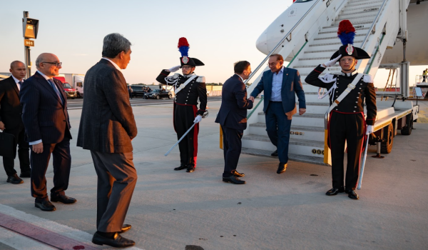 Ketibaan beliau disambut Menteri Luar, Datuk Seri Mohamad Hassan dan Duta Besar Malaysia ke Itali; Datuk Zahid Rastam, Duta Kanan Hal Ehwal Protokol Itali; Fabrizio Romano dan bekas Duta Besar Itali ke Malaysia; Massimo Rustico.