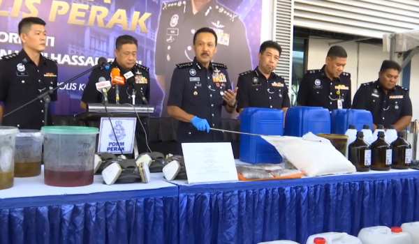“Turut dirampas dalam operasi ini adalah bahan-bahan kimia dan peralatan yang dipercayai digunakan untuk memproses dadah, semakan rekod jenayah mendapati empat suspek mempunyai rekod kesalahan lampau bersabit kes jenayah,” kata beliau pada sidang media di Ibu Pejabat Polis Kontinjen (IPK) Perak, di sini.