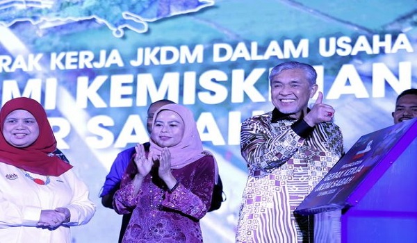 Datuk Seri Dr Ahmad Zahid yang juga Menteri Kemajuan Desa dan Wilayah berucap merasmikan Program MARA, Program Pemerkasaan Wanita Sabah - Wanita Memperkasa Keusahawanan 2025, dekat sini.