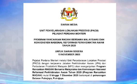 PUTRAJAYA, 19 November - Sebuah program berskala nasional yang menghimpunkan pelbagai inisiatif utama kerajaan di bawah satu bumbung akan berlangsung di pekarangan Dataran Putrajaya selama tiga hari, bermula 5 hingga 7 Disember ini.