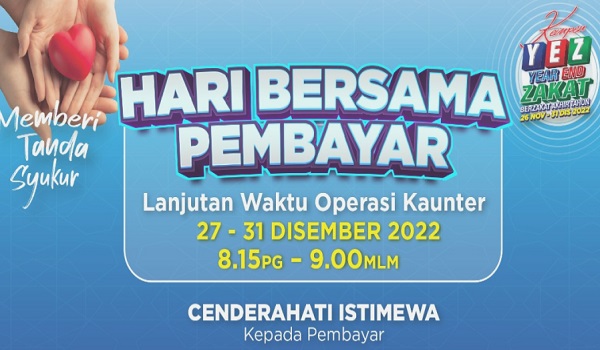 KUALA LUMPUR, 28 Disember– Pusat Pungutan Zakat – Majlis Agama Islam Wilayah Persekutuan (PPZ-MAIWP) melanjutkan waktu operasi di 10 kaunter PPZ-MAIWP bagi memberi ruang kepada pembayar menunaikan kewajipan berzakat sebelum berakhir tahun 2022.
