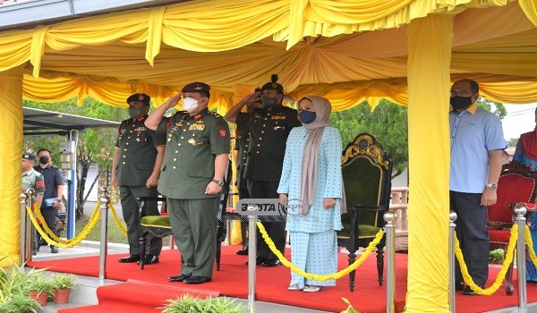 BESERI, 5 Ogos- Raja Muda Perlis, Brigedier Jeneral Tuanku Syed Faizuddin Putra Jamalullail menyaksikan acara Perbarisan Serah Terima Tugas Timbalan Komander Rejimen 504 Askar Wataniah Tentera Darat Malaysia yang diadakan di Padang Kawad Kem Bukit Keteri.