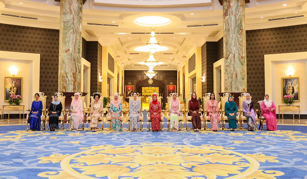 Berangkat sama ke majlis berkenaan Raja Permaisuri Perak, Tuanku Zara Salim, Sultanah Terengganu Sultanah Nur Zahirah, Tunku Ampuan Besar Negeri Sembilan Tuanku Aishah Rohani Tengku Besar Mahmud, Sultanah Kelantan Sultanah Nur Diana Petra dan Sultanah Kedah Sultanah Maliha Tengku Ariff.
