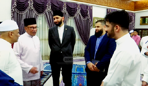 Terdahulu, Anwar dan isteri, Datuk Seri Dr Wan Azizah Wan Ismail menyertai 20 jemaah menunaikan solat Maghrib yang dipimpin oleh Imam Masjid Tuanku Mizan Zainal Abidin, Muhammad Hazri Othman sebelum meluangkan masa kira-kira sejam dalam sesi perkongsian ilmu bersama Omar.