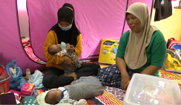 Bayi kembar lelaki itu merupakan antara 32 penduduk terjejas banjir daripada tujuh keluarga yang berlindung di PPS SK Gual To’ Deh selepas kediaman mereka mula dinaiki air berikutan limpahan air sungai Golok sejak Rabu.