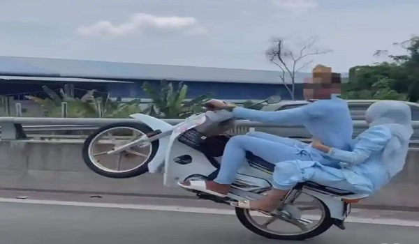 Terdahulu, tular satu video yang memaparkan pasangan suami isteri melakukan aksi 'wheelie' di Jalan Kota Bharu-Kuala Terengganu sebelum mereka tampil menyerah diri di Ibu Pejabat Polis Daerah (IPD) Kota Bharu semalam.