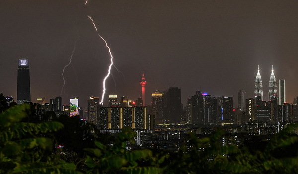 Ribut petir, hujan lebat di KL, Putrajaya, Labuan dan 11 negeri hingga 2 pagi