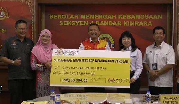 PUCHONG, 14 Jun– Kementerian Pendidikan (KPM) memperuntukkan sebanyak RM600,000 bagi menaik taraf kemudahan asas lima sekolah yang terletak di Dewan Undangan Negeri (DUN) Kinrara.