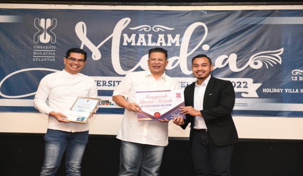 Anugerah tersebut disampaikan Naib Canselor UMK, Profesor Datuk Dr Razli Che Razak kepada penyelia Berita Ehwal Semasa (BES), RTM Kelantan, Majidah Ismail dan wartawan Muhammad Ameerul Hafiz Mohd Rosli.