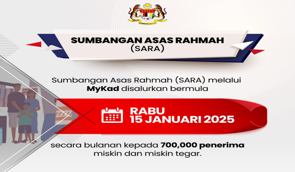 KUALA LUMPUR, 14 Januari – Bermula esok, Sumbangan Asas Rahmah (SARA) akan disalurkan secara bulanan melalui MyKad kepada 700,000 penerima miskin dan miskin tegar di seluruh negara.