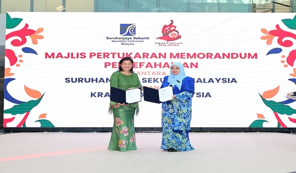 KUALA LUMPUR, 9 November - Suruhanjaya Sekuriti (SC) dan Perbadanan Kemajuan Kraftangan Malaysia (Kraftangan Malaysia) telah menandatangani Memorandum Persefahaman (MoU) bagi mempromosikan serta memperkukuh industri batik tempatan di pasaran domestik dan antarabangsa.