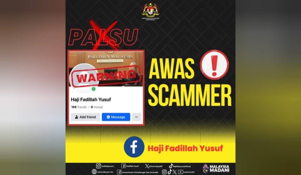 KUALA LUMPUR, 20 November- Timbalan Perdana Menteri yang juga Menteri Perladangan dan Komoditi, Datuk Seri Fadillah Yusof telah menerima laporan terdapat individu yang cuba melakukan penipuan menggunakan gambar profilnya.