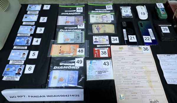 Antara peralatan yang dirampas termasuk komputer riba, mesin pencetak, mesin laminasi, cakera keras serta dua MyKad asli dan empat MyKad palsu.